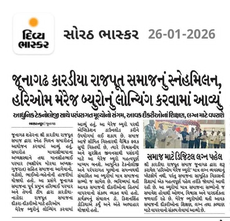 શ્રી ક્ષત્રિય કારડીયા/નાડોદા રાજપૂત પરિવારો ગુજરાત તથા અન્ય રાજ્યોમાં અને વિશ્વના દેશોમાં નોકરી અને બિઝનેસમાં સ્થાયી થઇ ગયા છે. પણ સાંપ્રત સમયમાં જ્યારે સંતાનો નોકરી કે બિઝનેસમાં સેટ થાય છે, ત્યારે તેમને પોતાના જ સમાજમાં યોગ્ય જીવનસાથી મેળવવામાં મુશ્કેલીઓ અનુભવાય છે. આ મુશ્કેલીને દૂર કરવા માટે "હરિૐ મેરેજ બ્યુરો"ની સ્થાપના કરવામાં આવી છે. આપણા સમાજના યુવાનો અને યુવતીઓને યોગ્ય જીવનસાથી મેળવવામાં સહાય કરવા માટે આધુનિક ટેકનોલોજી અને પરંપરાગત મૂલ્યોના સમન્વયથી સગાઈ સંબંધોને સરળ, સુરક્ષિત અને સુવ્યવસ્થિત બનાવવાના શ્રી ગણેશ કર્યા છે.